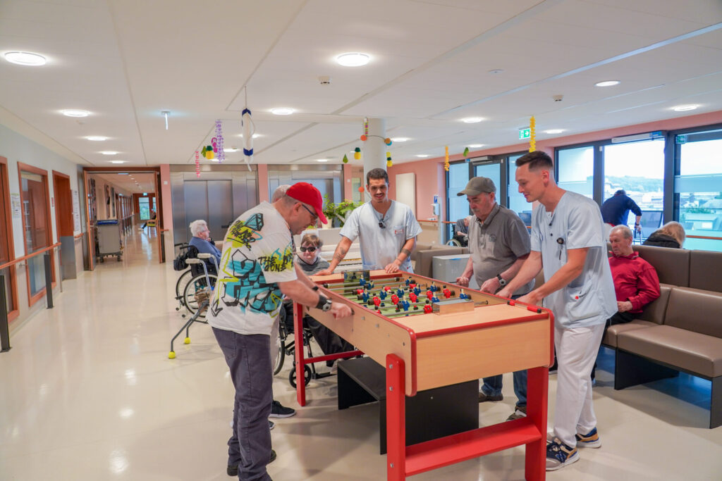 La spacieuse cour centrale aménagée de la maison des aînés Woiwer avec son espace cafétéria constitue certainement un des points de rendez-vous conviviaux de tous les résidents et des visiteurs. Cet espace accueille même un espace de jeux pour les plus petits, afin de favoriser les contacts intergénérationnels.