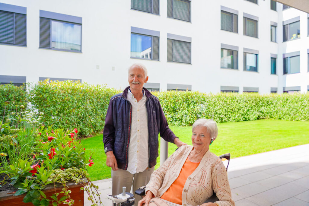 À la belle saison, profitez de la belle terrasse pleine-aire dans la cour intérieure et sur le côté sud de cette nouvelle bâtisse. Installez-vous ici avec vos invités ou avec d’autres résidents, entourés de verdure, haies et arbustes.